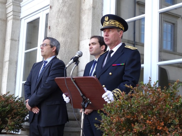 La France est en deuil à la suite des attentats de vendredi dernier à Paris. Les drapeaux sont en berne jusqu’à ce mardi en Haute-Loire, comme partout ailleurs. Des minutes de silence ont été observées à midi dans tous les lieux publics, et notamment dans les établissements scolaires, les entreprises et les collectivités, et les administrations. Les services de l'Etat ont eu, par exemple, l'occasion de se recueillir dans la cour de la préfecture du Puy-en-Velay, autour des forces de l'ordre et des sapeurs-pompiers…
