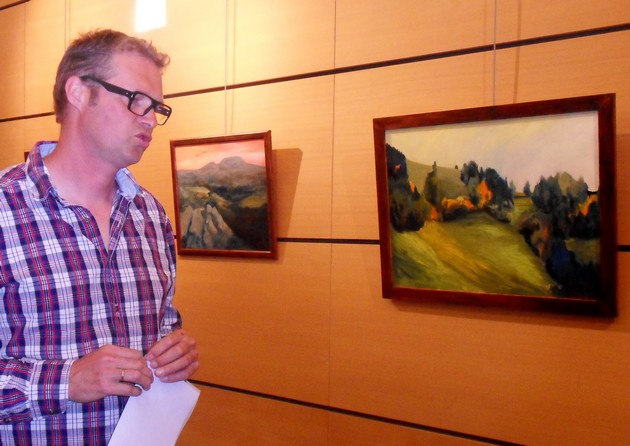 Jusqu'au 8 septembre prochain il présente les peintures qu'il a réalisé en observant les paysages diversifiées de notre département, son exposition s'intitule " Villages et Paysages Altiligériens ". On y trouve, entre autre, des oeuvres qui s'inspirent du village dans lequel il est install&e...
