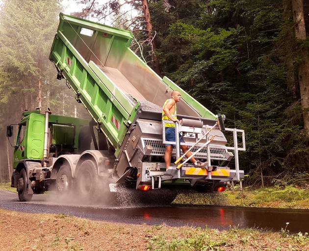 Le Président du Département, Jean-Pierre Marcon, accompagné de Joseph Chapuis, Vice-président en charge des routes, et des conseillers départementaux et élus locaux, s’est rendu mercredi dernier sur un chantier d’enduit routier entre Vals-le-Chastel, Saint-Didier-sur-Doulon et Berbezit. L’occasion de porter un coup de projecteur sur les mesures prises par le Département pour préserver et sécuriser les routes en Haute-Loire…