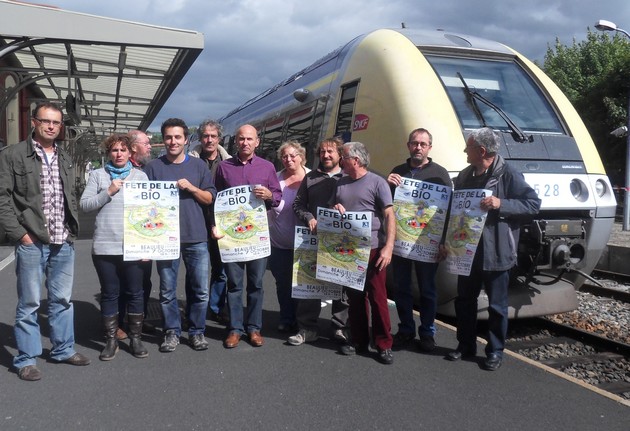 Lors de la présentation de la Foire de la Bio, en gare SNCF au Puy...