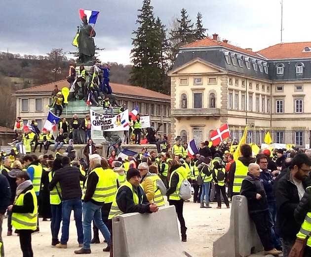 Lors du rassemblement des Gilets jaunes sur la place du Breuil...