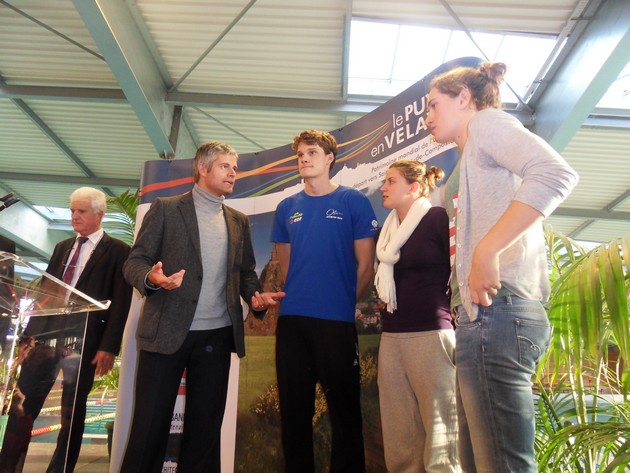 C’est l’événement sportif de la rentrée…Le premier meeting national de la Vague organisé ce samedi au Puy-en-Velay, en présence des nageurs médaillés aux Jeux Olympiques : Yannick Agnel, double champion Olympique à Londres sur 200m, Camille Muffat, médaillée d’or sur 400m nage libre, ou bien encore Ophélie Etienne-Moreau et Charlotte Bonnet, toutes deux médailles de bronze sur 4x200m nage libre. Avant de plonger dans le bassin, ils ont participé vendredi soir à l’inauguration du centre aqualudique, en présence de nombreux invités…