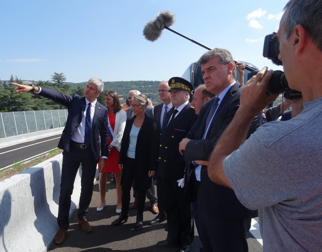 C'est l’un des plus grands chantiers routiers de ces dernières années…Le contournement du Puy-en-Velay était attendu depuis plusieurs décennies, il devient aujourd'hui une réalité depuis que Laurent Wauquiez qui était Maire du Puy-en-Velay en 2008, en a fait l’une de ses priorités. Alors membre du gouvernement, il a fait le forcing pour obtenir les crédits nécessaires auprès de l’Etat. Le projet est devenu réalité avec divers engagements notamment celui d’une tranchée couverte aux abords d’Ours-Mons. C’est avec la réalisation du viaduc de Taulhac que le projet a commencé à prendre forme, avant les grands travaux de terrassement. Ce sont 10 années de travaux au total, conduits par les services de la DREAL et de la DIR, qui ont été nécessaires. Cette réalisation va incontestablement modifier les échanges sur le territoire du Puy-en-Velay durant les prochaines années, et le rendre plus attractif. Il va d'autre part désengorger la ville chef-lieu qui a longtemps souffert de la présence de poids lourds. Elisabeth Borne, la ministre des transports, a eu l'occasion de se rendre compte du chantier entrepris, lors de la cérémonie d'inauguration organisée ce vendredi, avant la mise en circualtion prévue ce lundi. Laurent Wauquiez a espéré que la ministre " sème d'autres graines " pour poursuivre le dévéloppement du territoire. Aux côtés d'élus de la Loire, il l'a interpellé sur l'A45, le projet d'autoroute entre Saint-Etienne et Lyon. La ministre a déclaré que le désenclavement était sa priorité, et elle s’est engagée à débloquer de l’argent pour que des travaux soient effectués sur la RN102 qui relie Le Puy-en-Velay à Clermont-Ferrand, début 2019. Après un déjeuner en préfecture, Elisabeth Borne a eu l'occasion de rencontrer les membres de la start-up ponote Monkey Factory qui a développé une solution de transport dématérialisée pour prendre le bus avec son smartphone.