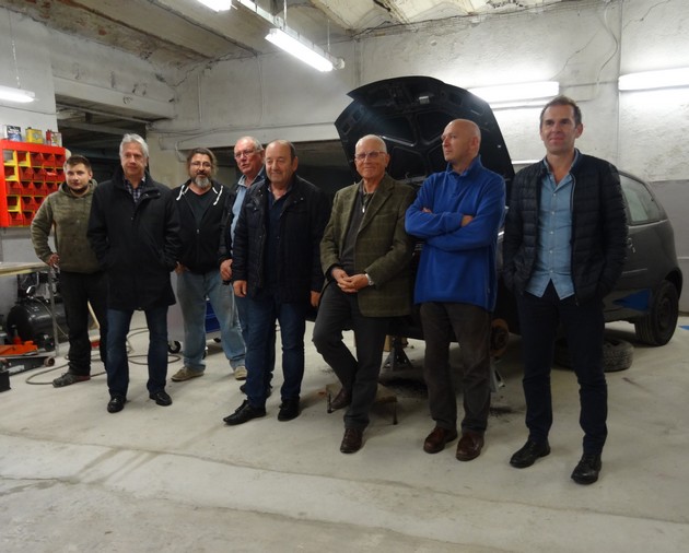 Frédérc Naud entouré de l'équipe du garage solidaire à Chadrac...