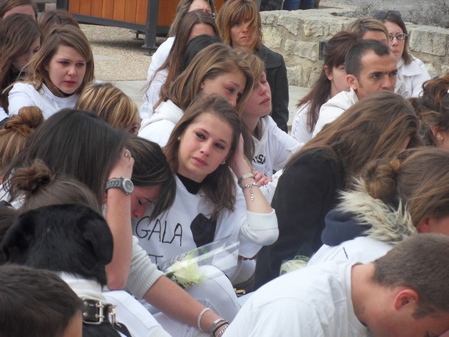Il y avait beaucoup de monde mardi matin dans les rues d'Yssingeaux, lors de la marche blanche organisée en mémoire de Gala, la jeune fille de 18 ans qui était scolarisée sur la commune. De nombreux élèves du lycée agricole étaient vêtus de tee-shirts blancs sur lesquels était inscrit " Gala on ne t'oublies pas ". Ils sont partis du lycée agricole et ont rejoint le centre-ville, avant d'effectuer un sit-in sur la place de la Grenette, de se recueillir devant les photos de leur camarade, de déposer les roses blanches qu'ils avaient en main, et d'allumer quelques bougies. Difficile pour certains de contenir leurs larmes, toujours est-il que l'hommage rendu a été effectué dans la plus grande dignité, aux côtés du frère de la victime.