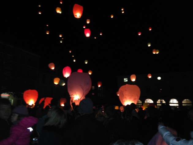 Des lanternes lumineuses ont éclairé et coloré le ciel d'Yssingeaux samedi soir...